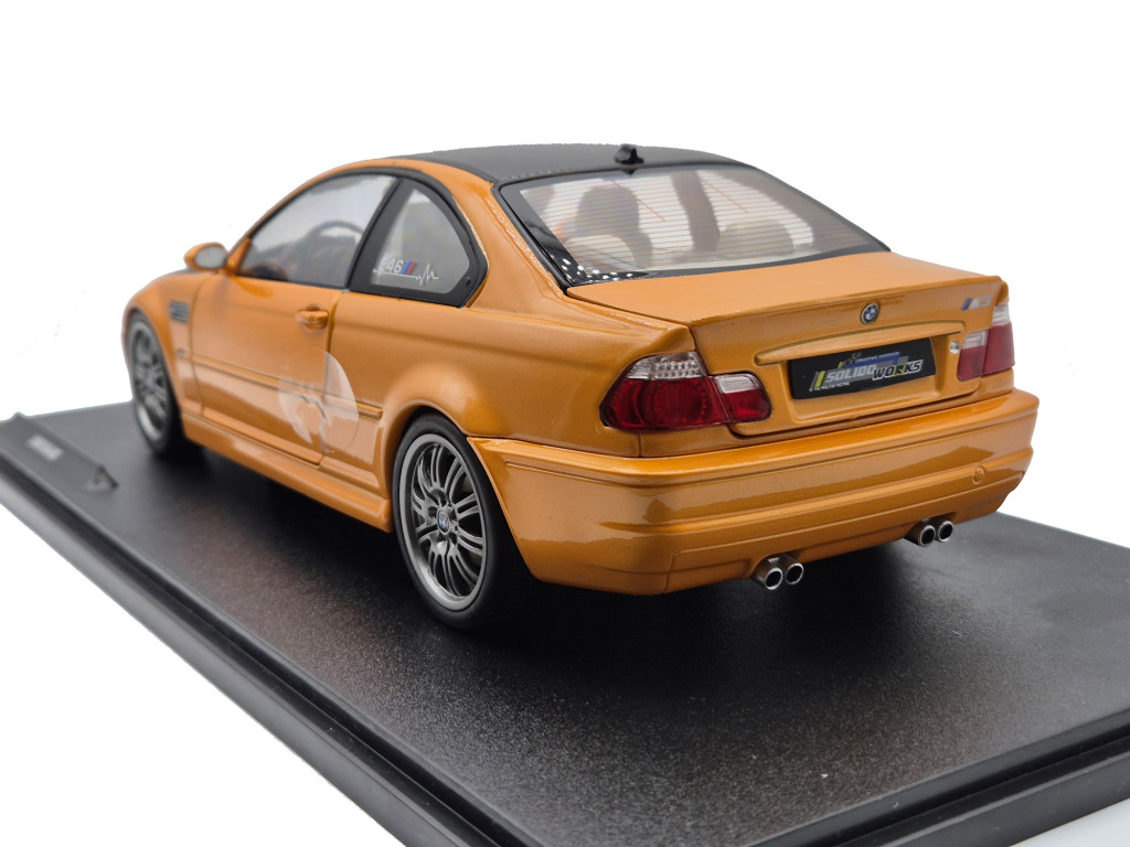 A Solido 1:18-as méretarányú modellje hűen adja vissza az eredeti autó arányait és karakterét. A narancs–fekete fényezés különleges megjelenést biztosít, miközben a részletes karosszéria, a kidolgozott felnik és a belső tér aprólékos részletei a gyűjtői szintet erősítik. A nyitható ajtók lehetővé teszik a beltér megcsodálását, így a modell nemcsak vitrindarabként, hanem részleteiben is élményt nyújt. Ideális választás BMW M-rajongóknak, 2000-es évek sportautóinak kedvelőinek és mindazoknak, akik egy igazi klasszikust szeretnének a gyűjteményükbe.