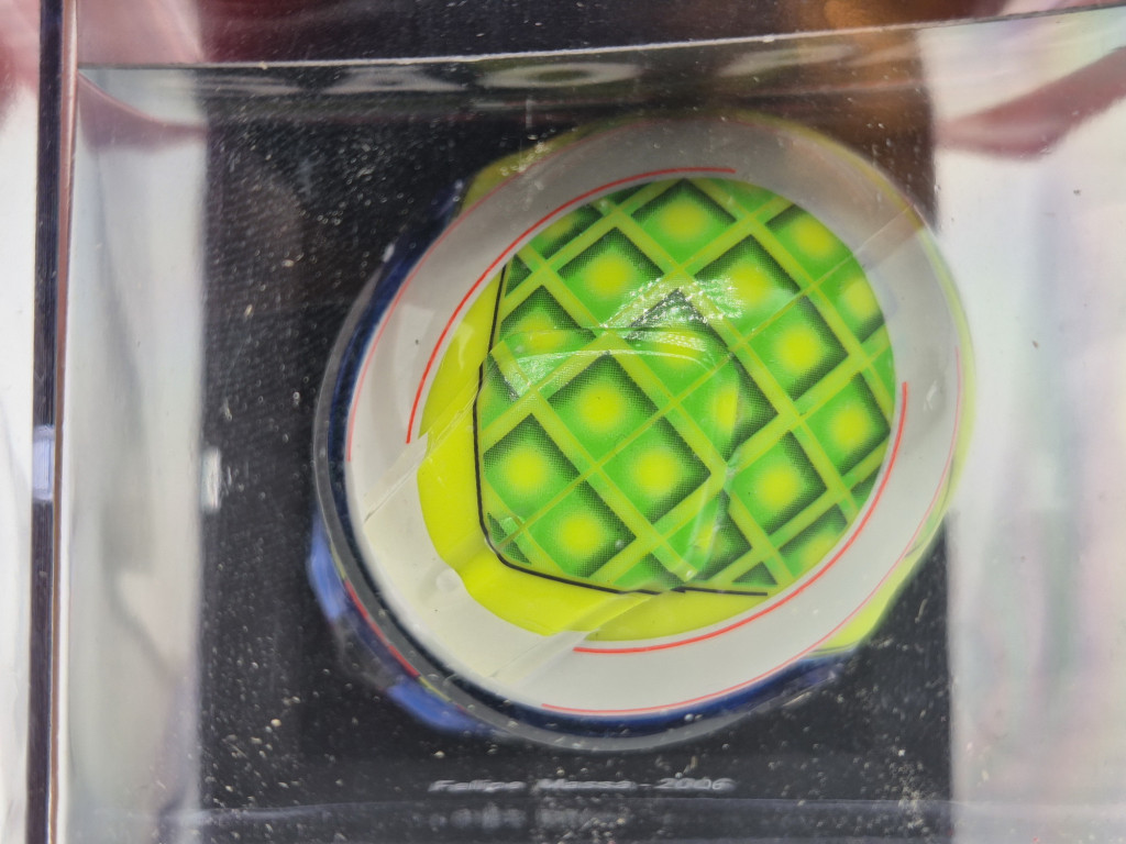 A Felipe Massa (2006) bukósisak a brazil pilóta egyik legemlékezetesebb Forma–1-es szezonjához kötődik. A 2006-os évben Massa a Scuderia Ferrari versenyzőjeként bizonyította tehetségét, megszerezve első futamgyőzelmeit, és végleg megerősítve helyét az élmezőnyben. A sisak dizájnja a klasszikus brazil nemzeti színeket és a Ferrari korszakra jellemző részleteket ötvözi, így azonnal felismerhető a korszak rajongói számára.