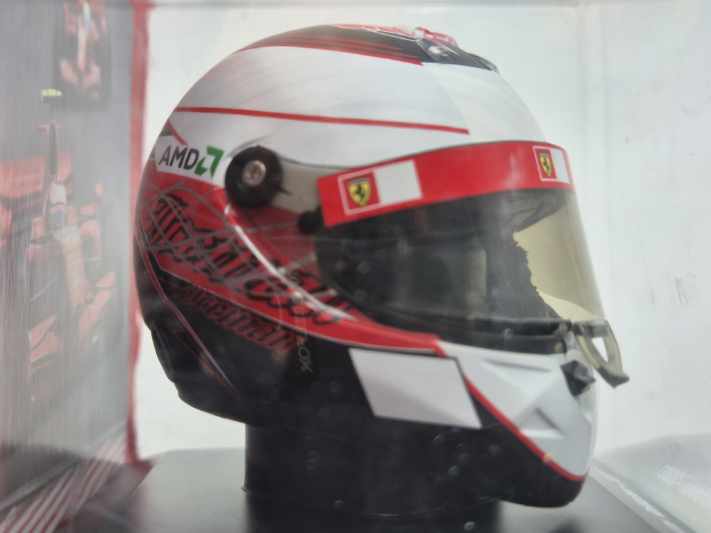 A Kimi Räikkönen 2007-es bukósisak a modern Forma–1 történetének egyik legemlékezetesebb szezonját idézi fel. A finn pilóta ebben az évben, a Ferrari színeiben, rendkívül kiegyensúlyozott teljesítménnyel megszerezte Forma–1-es világbajnoki címét, amely egyben a Ferrari eddigi utolsó egyéni vb-trófeája is. Räikkönen higgadt stílusa, kimagasló tehetsége és legendás „Iceman” személyisége mára a sportág ikonikus alakjává tette.