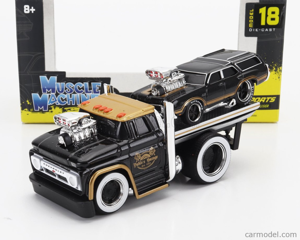 CHEVROLET C-60 FLATBED CAR TRANSPORTER 1966 WITH OLDSMOBILE VISTA CRUISER CUSTOM 1970 BLACK GOLD