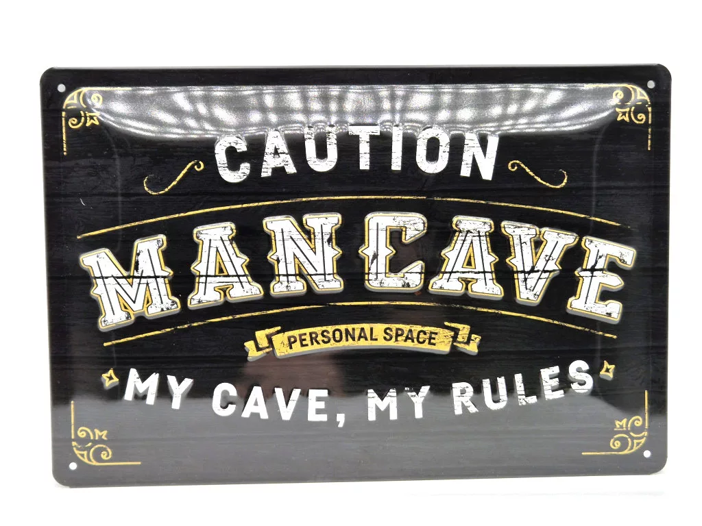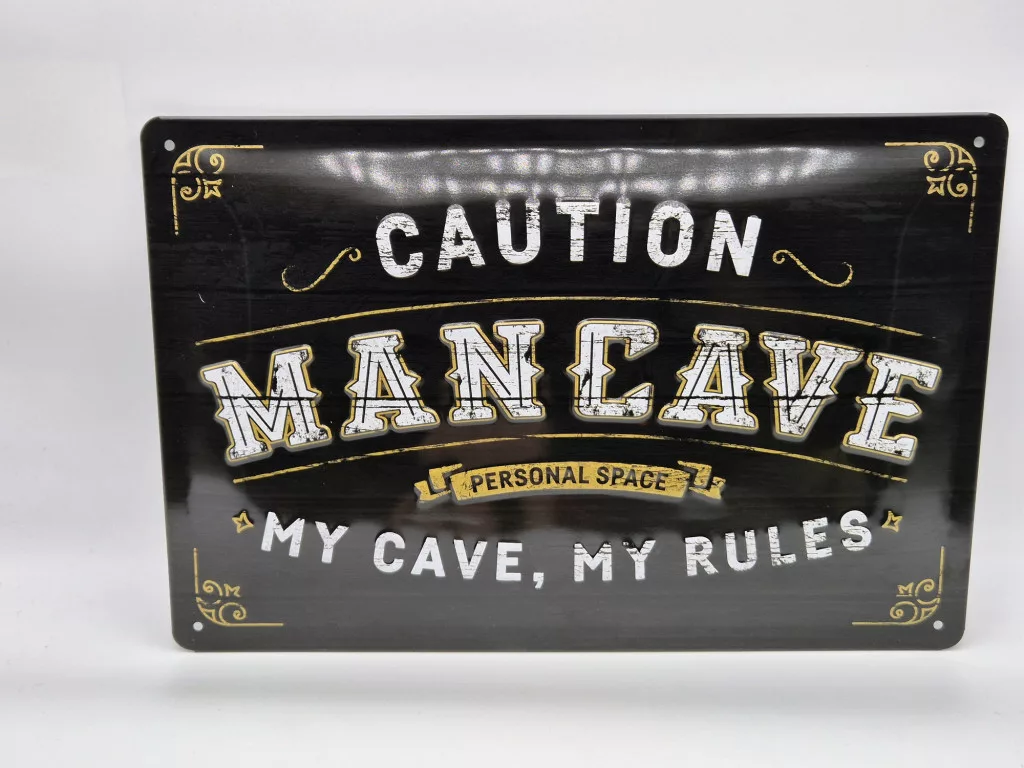 Caution - Man cave - My cave my rules - fémplakát fém tábla (30x20 cm)