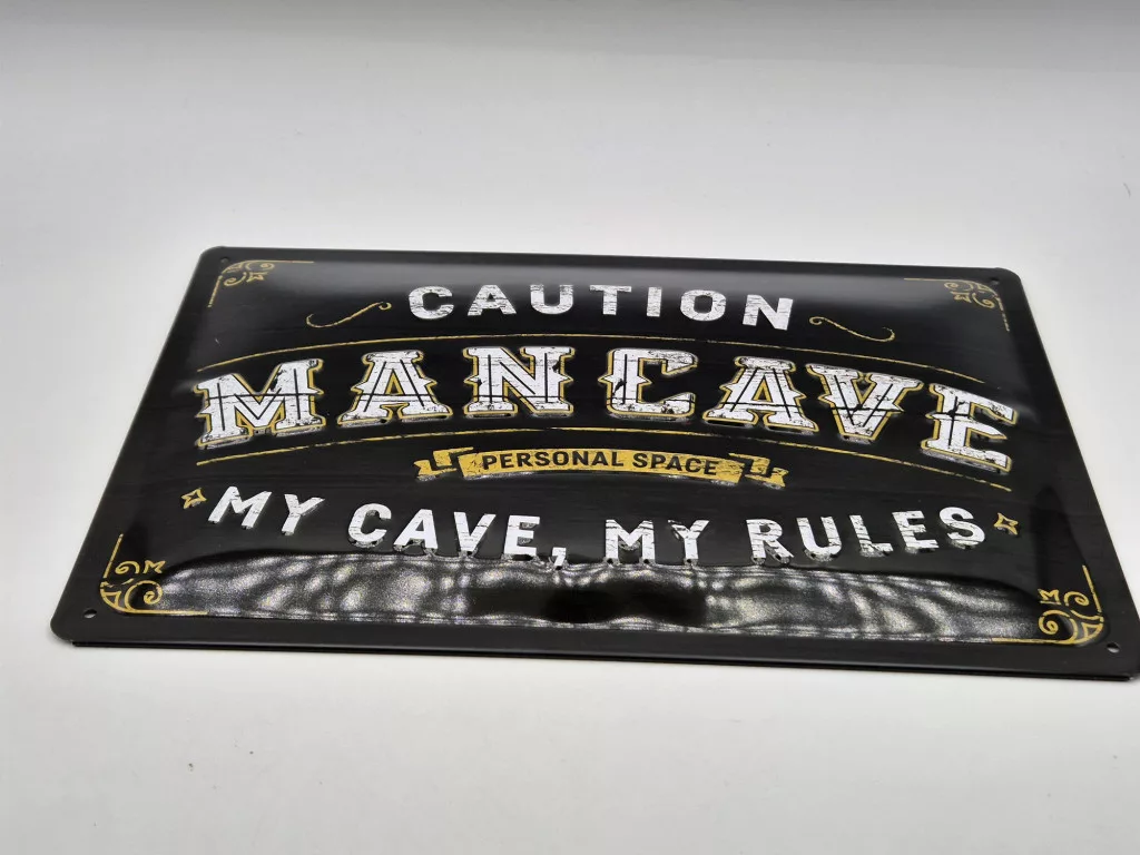 Caution - Man cave - My cave my rules - fémplakát  fém tábla (30x20 cm)