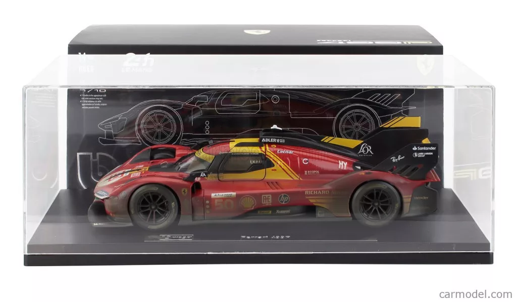 FERRARI WITH SHOWCASE - 499P 3.0L TURBO V6 TEAM FERRARI AF CORSE N 50 WINNER 24h LE MANS (AFTER RACE VERSION) 2024 ANTONIO FUOCO - MIGUEL MOLINA - NICKLAS NIELSEN RED