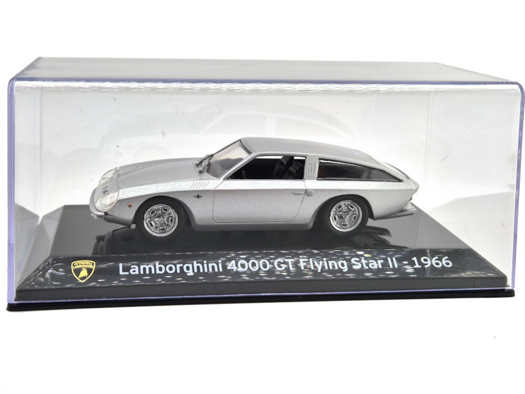 A Lamborghini 4000 GT Flying Star II (1966) - Edicola - 1:43 a korai Lamborghini történetének egyik legkülönlegesebb fejezete. A modellt a milánói Carrozzeria Touring készítette 1966-ban, a 4000 GT alapjaira építve. A Flying Star II nem sorozatgyártású modell volt, hanem egyedi tanulmány, amely a luxus grand tourer és a shooting brake stílus merész ötvözeteként született meg.