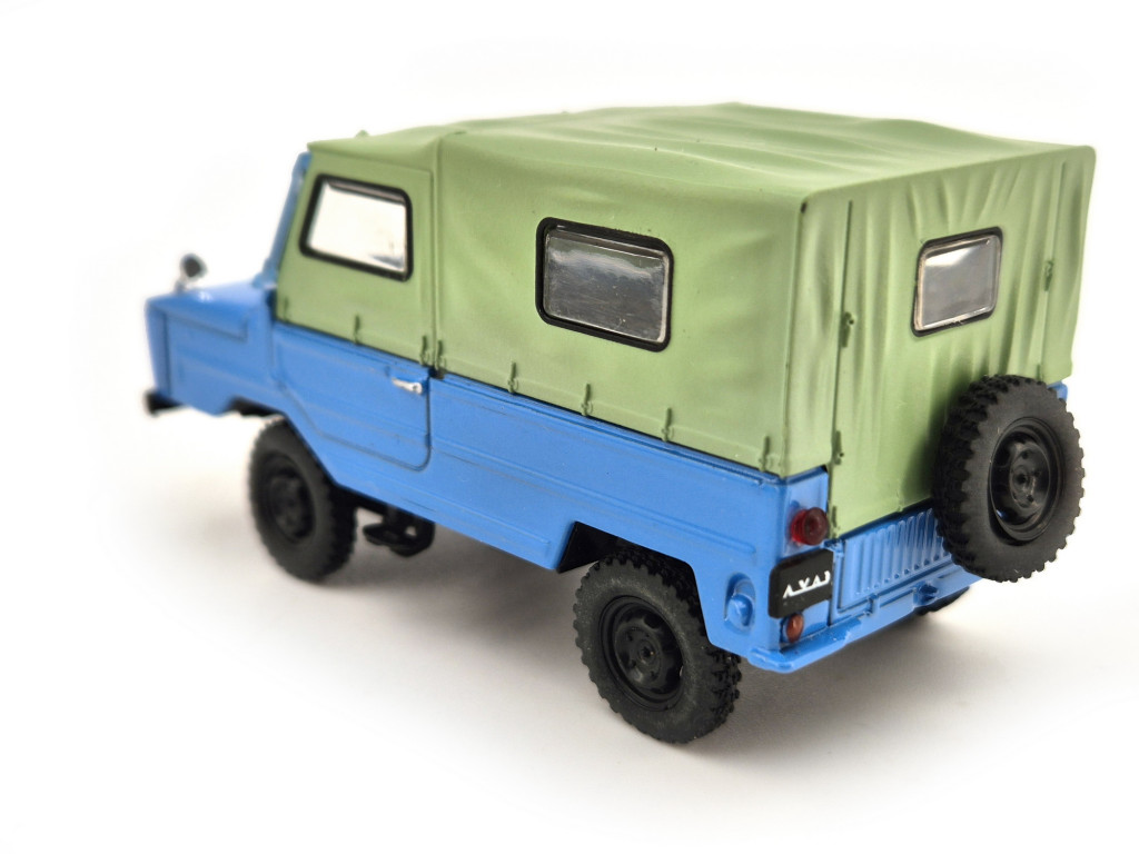 A Luaz 969 (1966) - Edicola - 1:43 a szovjet blokk egyik legismertebb könnyű terepjáróját jeleníti meg. A LuAZ (Lutszki Autógyár) által gyártott 969-es típus a hatvanas évektől kezdve vált ismertté, elsősorban egyszerű technikai megoldásai és kiváló terepképessége miatt. A modell kifejezetten könnyű szerkezetű volt, amelyet nehéz, sáros vagy erdei körülmények közé terveztek.
