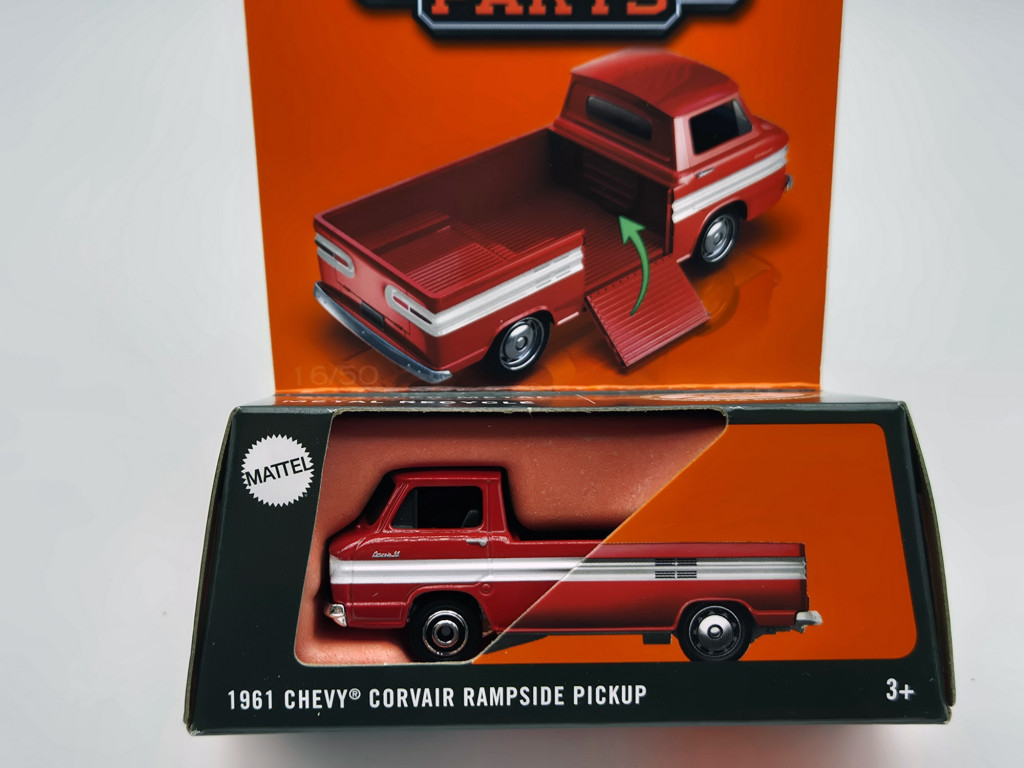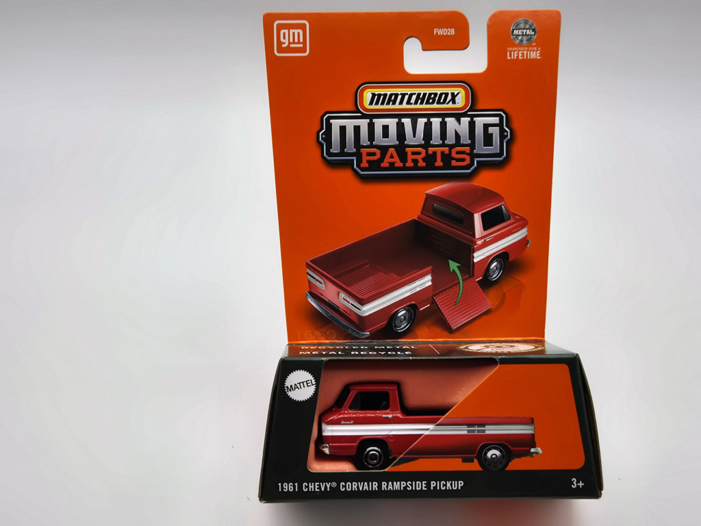 Moving Parts, minden autón nyitható valami. Új termék, játékautó!Matchbox Moving Parts – Chevrolet Corvair Rampside Pickup (1961) – Matchbox – 1:64 Eredeti Matchbox “Moving Parts” kiadás, mozgó rakodórámpávalRészletgazdag 1:64 méretarányú die-cast modell