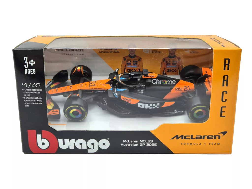 A McLaren MCL39 F1 #81 (2025) a wokingi csapat legújabb Forma–1-es konstrukciója, amely a korábbi szezonok tapasztalataira építve tovább finomítja a McLaren technikai irányvonalát. Az MCL39-et hatékony aerodinamikai csomag, optimalizált padlólemez és kiegyensúlyozott karosszériakialakítás jellemzi, amelyek célja az állandó leszorítóerő és a stabil gumikezelés biztosítása. A konstrukció a modern Forma–1 egyik kulcsterületére, a következetes versenytempóra összpontosít.