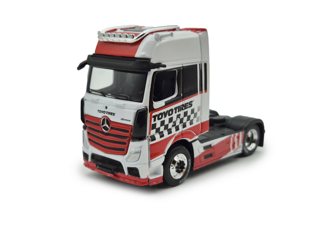 A Mercedes-Benz Actros 1851 MP4 Gigaspace Toyo Tires (2018) a hosszú távú fuvarozás egyik legismertebb nyergesvontatója, amely ebben a változatban a Toyo Tires sportos, versenyhangulatú megjelenését kapta. Az MP4 generáció modern formavilága és a Gigaspace fülke robusztus, mégis elegáns összképet ad.