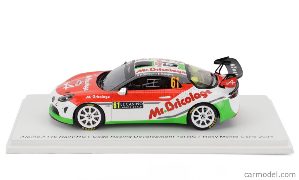 RENAULT ALPINE A110 RGT TEAM CODE RACING DEVELOPMENT N 61 WINNER RGT RALLY MONTECARLO 2024 PHILIPPE BAFFOUN - MARGOT DUPUY RED WHITE GREEN