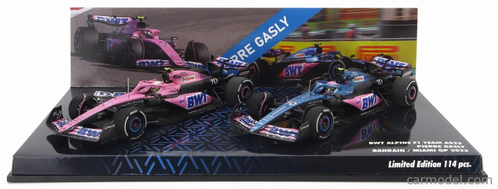 RENAULT SET 2X F1 A523 TEAM BWT ALPINE N 10 9th BAHRAIN GP 2023 + N 10 8th MIAMI GP 2023 PIERRE GASLY