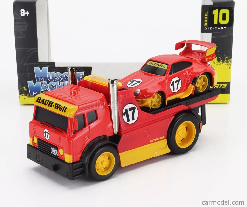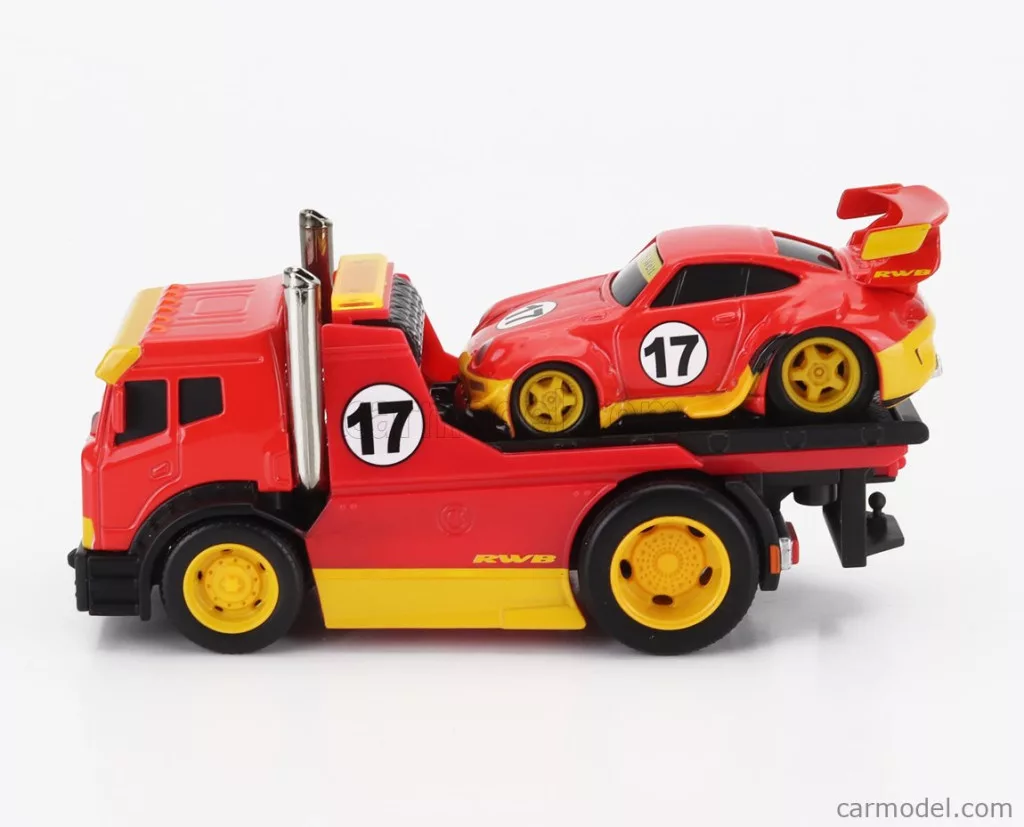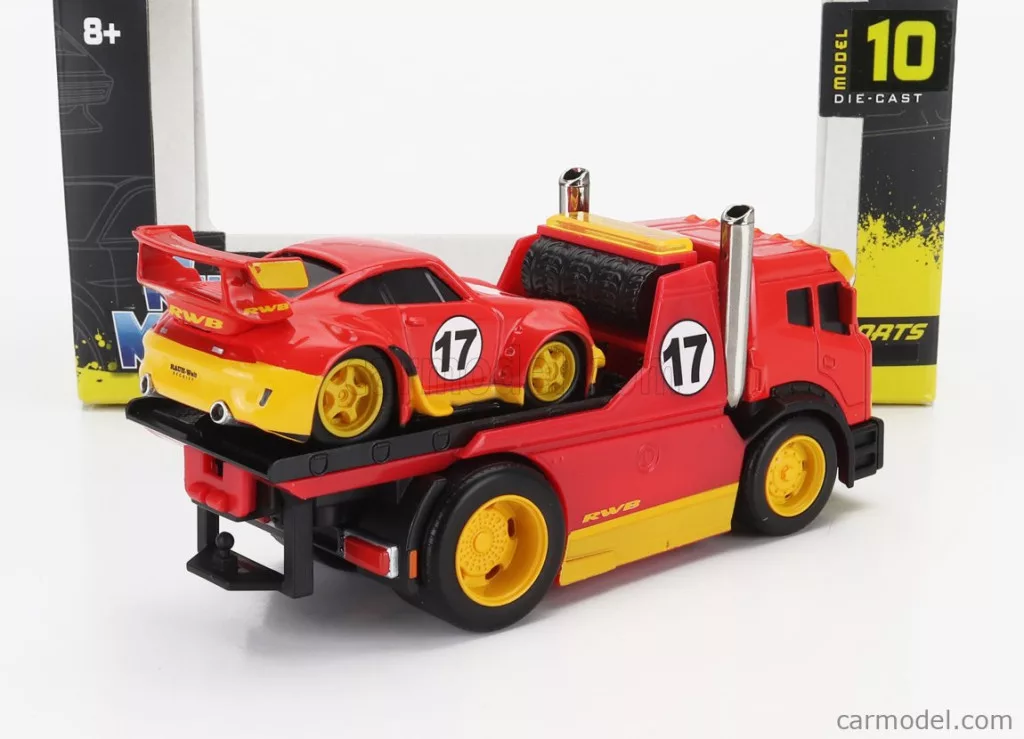 TRUCK  JDM FLATBED TRUCK CAR TRANSPORTER WITH PORSCHE 911 993 RWB CUSTOM 1996  RED YELLOW