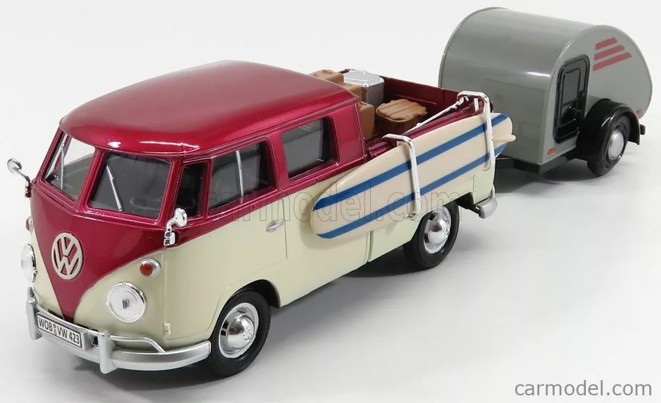 VOLKSWAGEN T1 TYPE 2 DOUBLE CABINE WITH TRAILER 1962 RED CREAM