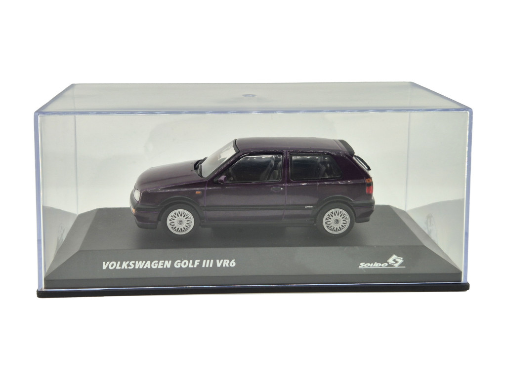 A Volkswagen VW Golf III VR6 (1994) a ’90-es évek egyik legismertebb európai sportkompaktja, amely a legendás VR6 motorral és karakteres megjelenésével vált ikonná az autórajongók körében. Ez a 1:43 méretarányú Solido modellautó részletgazdag kidolgozásban idézi meg a klasszikus Golf formavilágát, a sportos arányokat és a korszakra jellemző stílust. A különleges lila fényezés még egyedibb megjelenést biztosít, amely kiemeli a modellt a hagyományos utcai változatok közül.