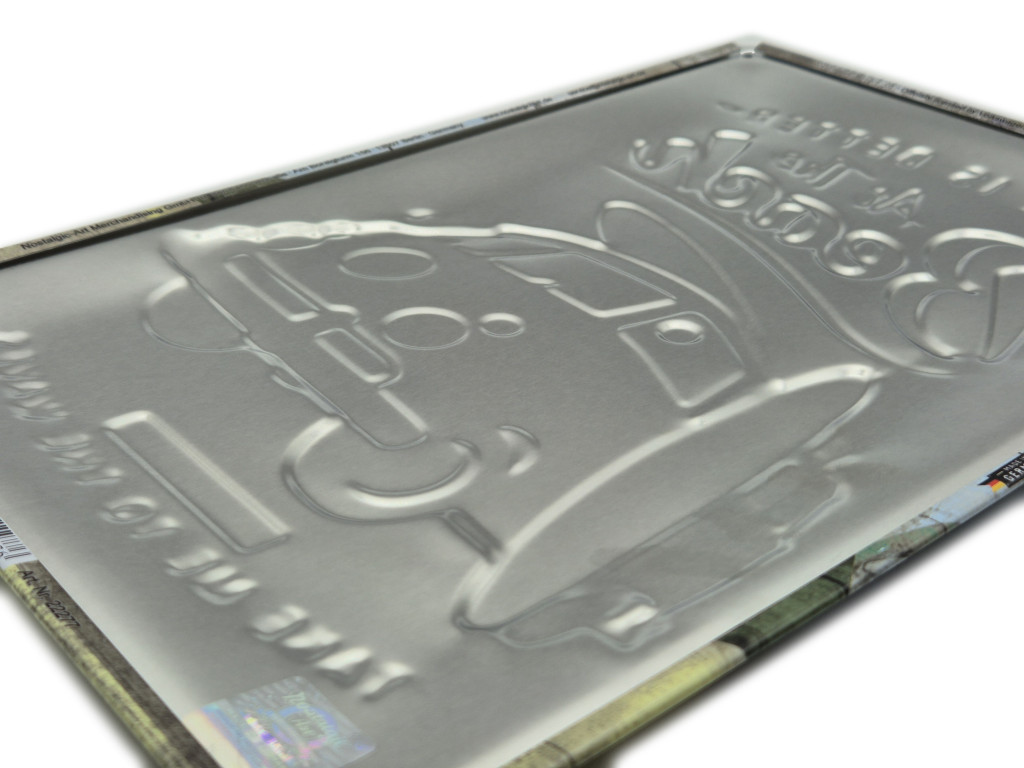 A tábla dombornyomott, kiváló minőségű fémből készült, így nem csak egy dekoráció, hanem tartós, masszív lakberendezési kiegészítő is. Német gyártású, hivatalosan licenszelt termék, amelyet a gyártó hologramos matricával is ellátott – így biztos lehetsz benne, hogy eredeti és prémium darabot vásárolsz, nem utánzatot. A 20x30 cm-es méret tökéletes arányokat kínál, akár falra akasztod, akár polcra, garázsba, irodába vagy bárhova állítod.