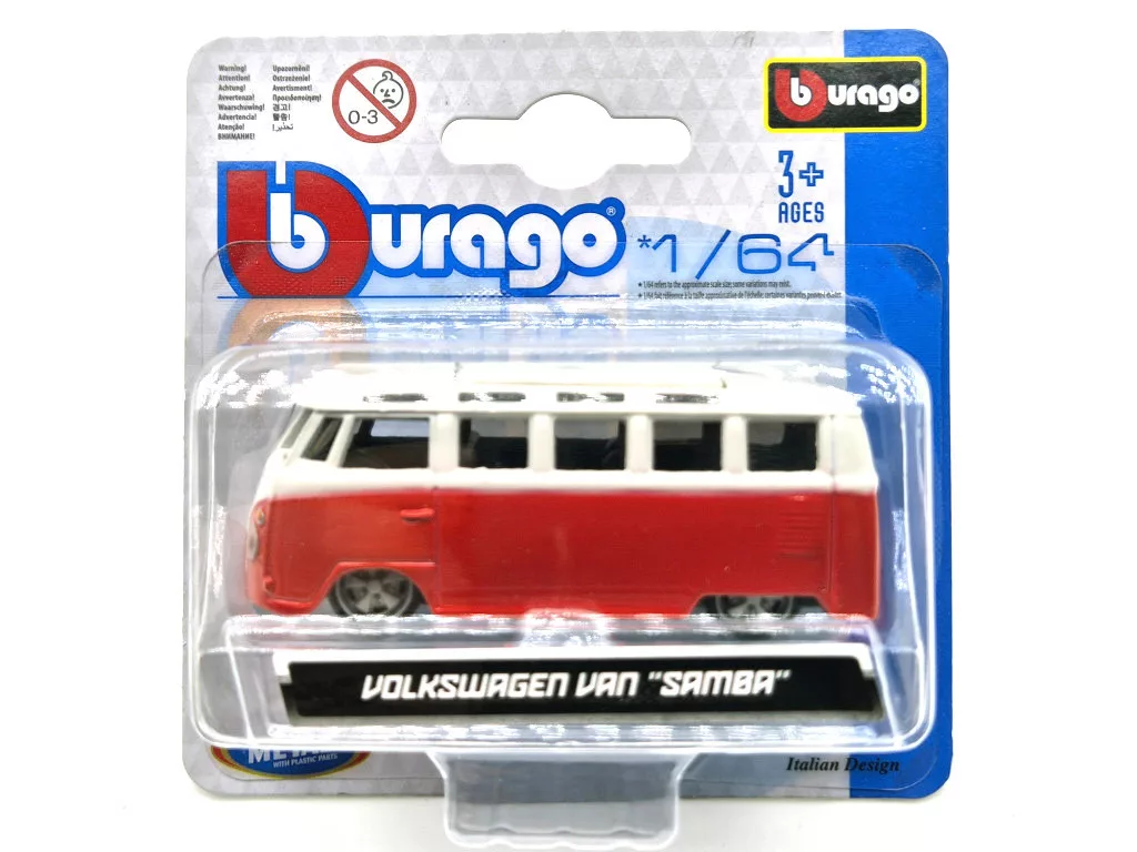 Volkswagen VW T1 transporter Samba Minibus - piros - Burago - 1:64 1/64 modellautó modell autó kisautó (m02069)