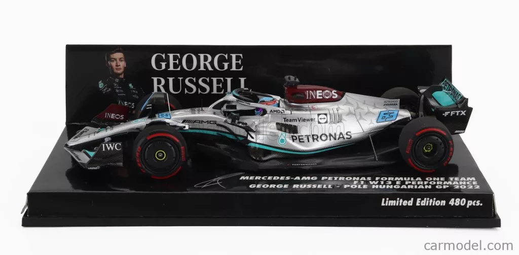 MERCEDES GP  F1 W13E TEAM MERCEDES-AMG PETRONAS F1 N 63 POLE POSITION HUNGARIAN GP 2022 GEORGE RUSSEL  SILVER GREEN