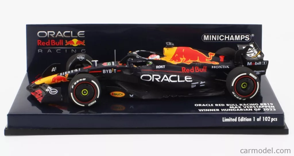 RED BULL F1 RB19 TEAM ORACLE RED BULL RACING N 1 WORLD CHAMPION WINNER HUNGARIAN GP 2023 MAX VERSTAPPEN MATT BLUE