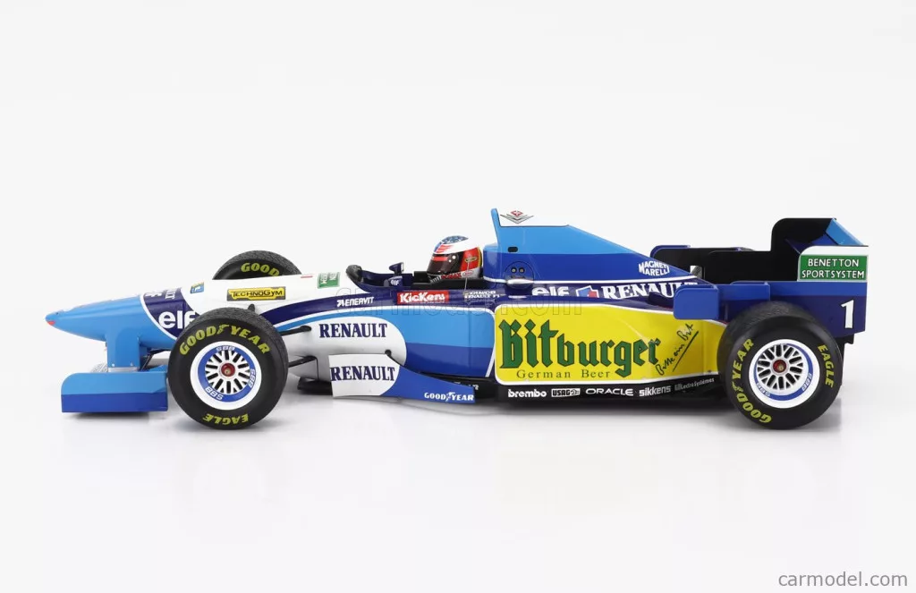 BENETTON F1 B195 TEAM MILD SEVEN RENAULT N 1 WORLD CHAMPION WINNER JAPAN GP WITH RAIN TYRES MICHAEL SCHUMACHER 1995 BLUE YELLOW