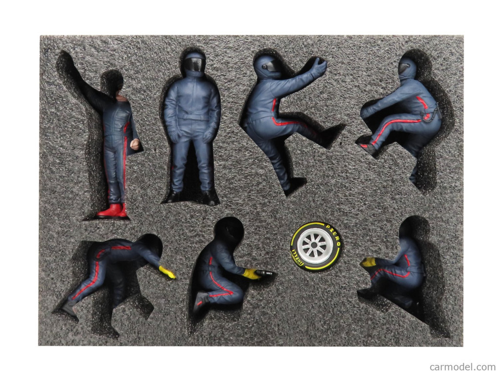 FIGURES F1 SET 2 2022 - DIORAMA PIT-STOP SET 7 X MECCANICI - MECHANICS - WITH DECALS MATT BLUE RED