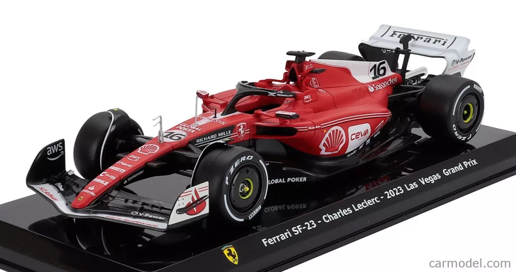 FERRARI F1 SF-23 TEAM SCUDERIA FERRARI N 16 2nd LAS VEGAS USA GP 2023 CHARLES LECLERC - CON VETRINA - WITH SHOWCASE RED BLACK WHITE