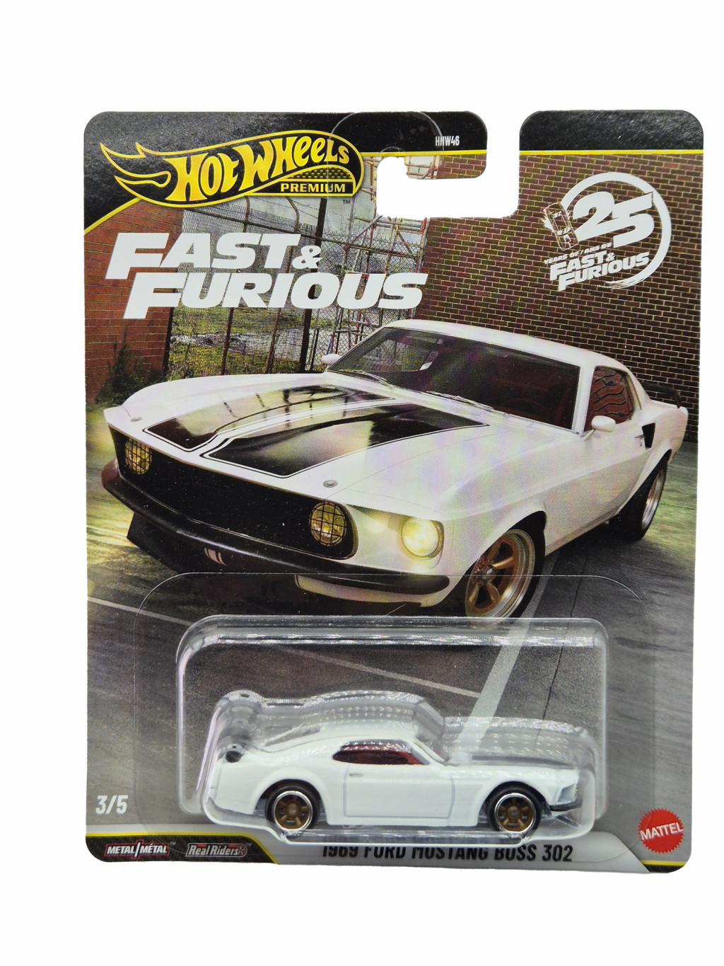 A modell a Hot Wheels Premium sorozat tagja, így fém karosszériával és alvázzal, valamint Real Riders gumis kerekekkel készült. A részletek visszaadják a Mustangra jellemző hosszú orr-részt, az izmos hátsó sárvédőíveket és a klasszikus amerikai kupéarányokat. A festés és a megjelenés méltó a Boss 302 örökségéhez, miközben megőrzi a Hot Wheelsre jellemző játékos karaktert is.