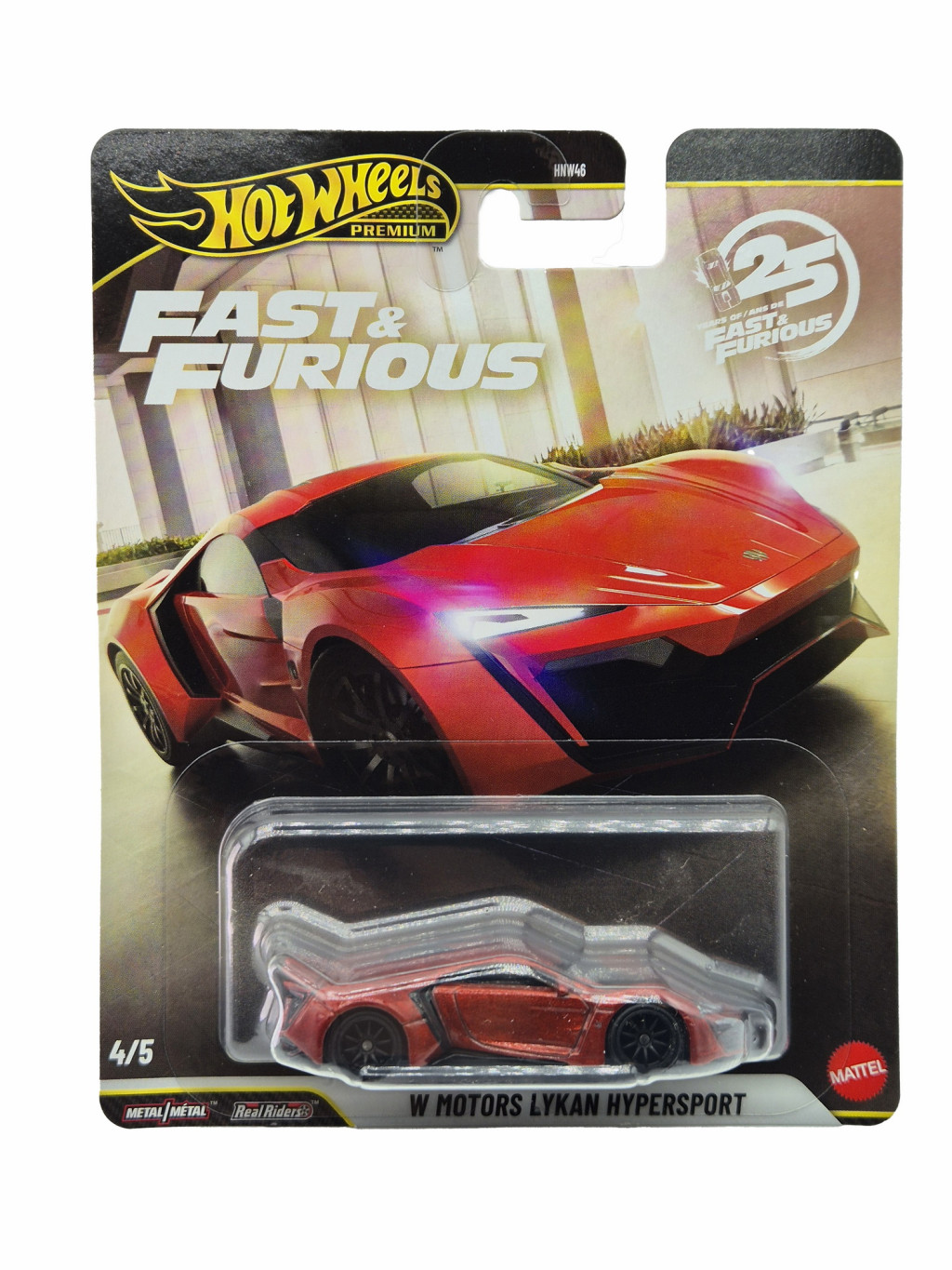 A modell a Hot Wheels Premium sorozat tagja, így fém karosszériával és alvázzal, valamint Real Riders gumis kerekekkel készült. A részletek hűen visszaadják a Lykan éles, szoborszerű vonalait, az agresszív első részt és a dinamikus, lapos kiállást. A miniatűr megjelenése egyszerre modern, erőteljes és exkluzív.